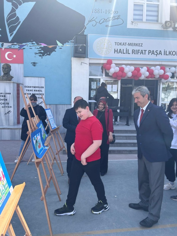 Program kapsamında öğrencimiz Enes Taha Sever’in eserlerinden oluşan özel bir resim sergisi de yer aldı. Enes Taha’nın renkleri ve ifadeleriyle hayata geçirdiği çalışmalar, katılımcılar tarafından büyük bir beğeniyle karşılandı. Sergi, otizmli bireylerin sanatsal yeteneklerine ve iç dünyalarına ışık tutarken aynı zamanda herkese ilham verdi.